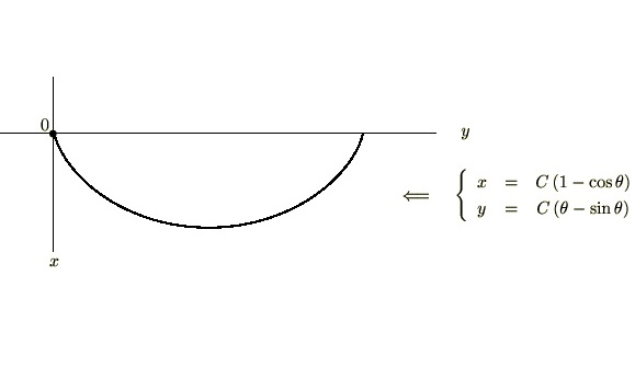 - 最速降下線問題 2 つの点を結ぶ最短の長さの曲線を考える場合、ある質点が曲線に沿って移動したとき一番短い時間で到達するような曲線はどういったものかというのを考察します。