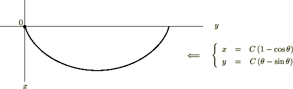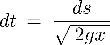 まで移動したとき一番短い時間で到達するような曲線はどんなものかと考える問題です。カテゴリ名に“~問題”と付け足していることにたいして意味はないのですが、理由的にはヨハンベルヌーイというひとに関係しています。