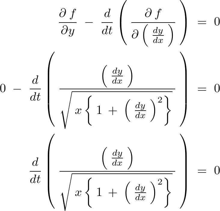 であると考えた場合の次のオイラー・ラグランジュの方程式を計算します。