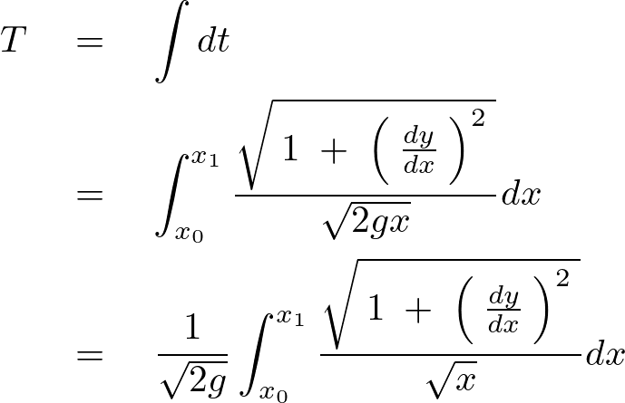 ある質点が曲線に沿って点(0,0)から(x1,x2)まで移動したとき一番短い時間で到達するような曲線はどのようなものかと考える問題です。