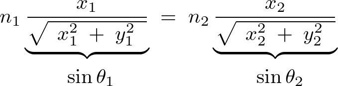 光の進む経路が最小になるように進むというフェルマーの原理からきていますがこれは一般的にはスネルの法則などという呼び方もします。