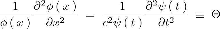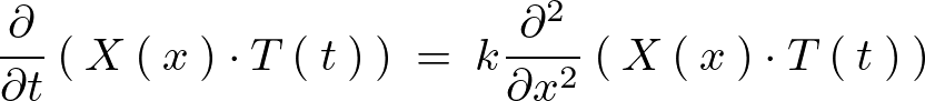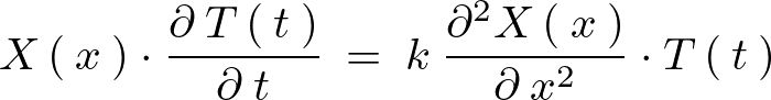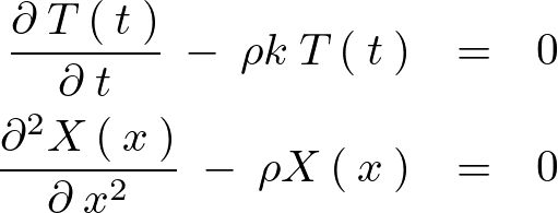 熱伝導方程式で使われた上記の微分方程式に対して、同様に次のようにおいて変数分離します。
