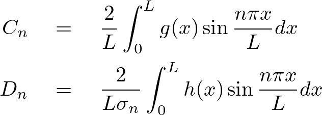 さらに弦の初期条件とその速度微分を次のように与えます。