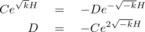 上記の求まった式に対してこの境界条件を当てはめると次のようになります。
