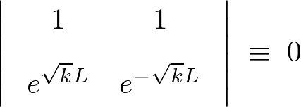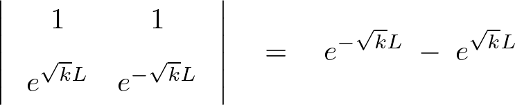 ひとまずここで上記式において自明でない解を持つかどうかの条件の確認をします。