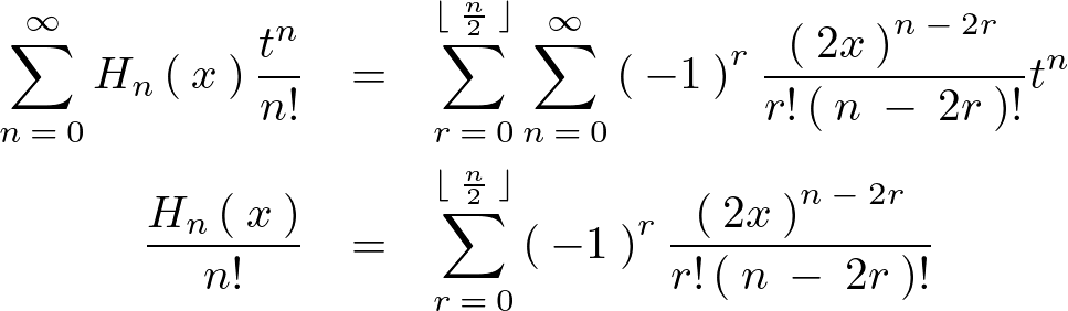 上記のエルミート母関数、