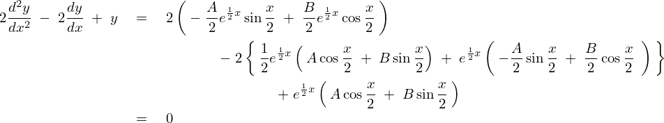 実際に上記で求まった解が例題の2階同次微分方程式に代入して合っているか確かめてみましょう。