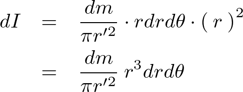 これにより、円盤の微小部分の慣性モーメントは上記の求めた